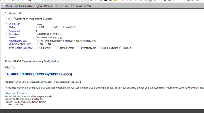 We realize the value of being able to update your website at will. Our custom interface is so simple to use, it's as easy as typing a email or a text document. What's even better is we configure it to work with your customized website and it is available in either a web based form or a Notes client based form.